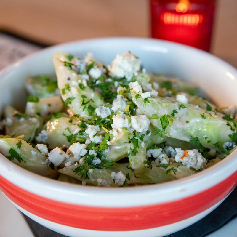 Ham, salami, mozzarella, blue cheese, onion, olive, romaine, cherry peppers, and house dressing.